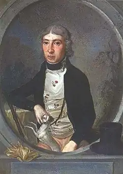 Johann Michael was known as a musical talent, who played piano and composed arias and menuets.[7] After Samuel von Brukenthal's retirement from politics, Johann collaborated with him in organizing and expanding his collections and library (the nucleus of the future Brukenthal National Museum, which includes also a Soterius von Sachsenheim collection[8]). He died on 31 March 1794 in Klausenburg (today Cluj-Napoca), where the family had moved after it had become clear that the seat of the provincial government was to be permanently located there.[6][9]