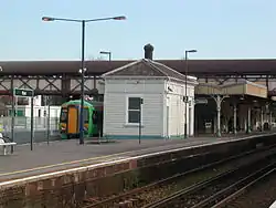 In 1893, coinciding with the first renaming, a new building was provided to the west. This contains the current ticket office and other station facilities. A large steel and glass porte-cochere stands outside at an angle, sheltering the taxi rank, forecourt and entrance area. This was moved from London Victoria following rebuilding works there which had rendered it redundant.