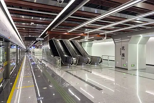 Huawei station (simplified Chinese: 花围站; traditional Chinese: 花圍站; pinyin: Huāwéi Zhàn; Cantonese Yale: Fāwàih Jaahm) is a station on Line 10 of the Guangzhou Metro. It is located under the intersection of Yulan Road and a planned road, south of Guanggang New Town Depot in Guangzhou's Liwan District. It opened on 29 June 2025.[1]