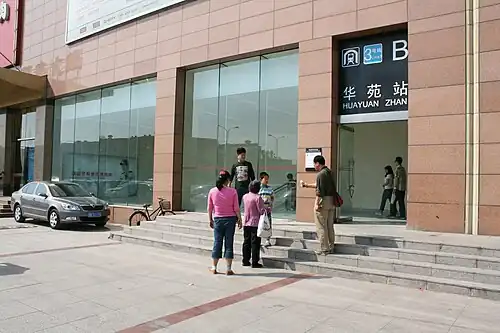 Huayuan Station (Chinese: 华苑站) is a station of Line 3 of the Tianjin Metro. It started operations on 1 October 2012.[1]