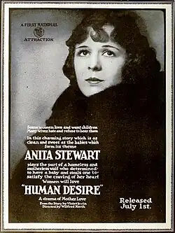 Human Desire is a 1919 American silent romantic drama film starring Anita Stewart who produced along with Louis B. Mayer. It was distributed by Associated First National.[1][2]