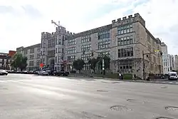 In 1875 Fogg High School was built adjacent to Hume School at the corner of Broad and Eighth and absorbed its high school students. Around 1910 both schools were razed and replaced by Hume-Fogg High School, a Gothic Revival building, which opened in 1912.[6] The building consists of five floors including a basement, which has several tunnels leading to various locations in downtown Nashville. However, they are currently boarded off and inaccessible. In 1942 Hume-Fogg was recast as a technical and vocational school.