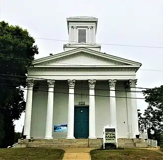 The Huntington Street Baptist Church is a historic Baptist Church meeting house at 29 Huntington Street in New London, Connecticut. Built in 1843 by John Bishop, who also designed it, it is one of the last major examples of Greek Revival architecture to be built in the city. The church was built by a Universalist congregation and then purchased by a Baptist one. The building was listed on the National Register of Historic Places in 1982.[1] As of 2017, the church is still in use as a Baptist house of worship.[2][3]