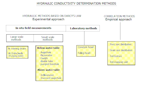 • In the experimental approach the hydraulic conductivity is determined from hydraulic experiments that are interpreted using Darcy's law.