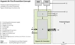 Hypoxic air technology for fire prevention, also known as oxygen reduction system (ORS), is an active fire protection technique based on a permanent reduction of the oxygen concentration in the protected rooms. Unlike traditional fire suppression systems that usually extinguish fire after it is detected, hypoxic air is able to prevent fire.