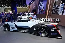 The Hyundai N 2025 Vision Gran Turismo is a concept car developed by Hyundai. The car was unveiled at the 2015 Frankfurt Motor Show. It was built under the Vision Gran Turismo project and to commemorate Hyundai's 50th anniversary in 2017. It also served as a launch platform for Hyundai's N performance division, as well as a glimpse into the future of fuel cell technology in motorsports.[1]