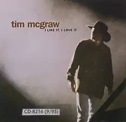 "I Like It, I Love It" is a song written by Jeb Stuart Anderson, Steve Dukes, and Mark Hall, and recorded by American country music artist Tim McGraw. It was released in July 1995 as the first single from his album All I Want. The song is McGraw's ninth single overall, and it became his third number-one single on the Hot Country Songs chart. It was recorded at FAME Studios in Muscle Shoals, Alabama.[1]