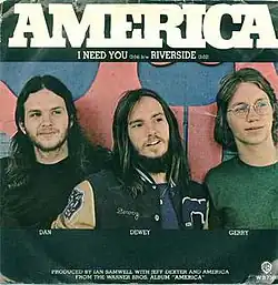 "I Need You" is the second single by the band America from their eponymous debut album America, released in 1972. The song was written by Gerry Beckley.