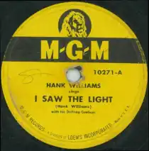 While the release of Williams' recording was held, the first issued version was by Clyde Grubb, who recorded it on August 13, 1947.[6] Grubb's version was released by RCA Records (RCA 20-2485) in October 1947 with "When God" on the flipside, backed by his Tennessee Valley Boys.[13] Williams' version was released in September 1948, while it was later copyrighted on November 16.[14] It was backed with "Six More Miles (To the Graveyard)" and issued on MGM Records (MGM 10271).[15] Boys' Life favored the record, stating: "It's a typical Hank Williams lament, which you western and hillbilly fans will eat up".[16] Hank Williams first appeared on the Kate Smith Evening Hour on March 26, 1952, and joined in with the rest of the cast singing "I Saw The Light."