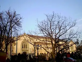 Its primary performing venue is located in the former Notre Dame de Sion (Sacré-Cœur) Institute's chapel, which is listed in the National Register of Historic Monuments.[4][5] The main auditorium seats 560, and is named after the conductor Ion Baciu; the second auditorium seats 300, and is named after the composer Gavriil Musicescu.[6] A smaller hall, with 144 seats, named after the composer Eduard Caudella, is located at the first floor of the Balș House, the same building which hosted, on 18 January 1847, the concert of the pianist and composer Franz Liszt.[7]