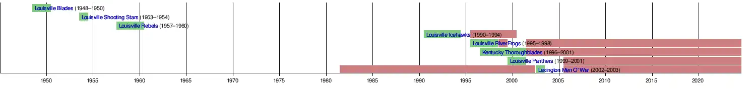 Lexington Men O' WarLouisville PanthersKentucky ThoroughbladesLouisville RiverFrogsLouisville IcehawksLouisville RebelsLouisville Shooting StarsLouisville Blades