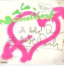 In advance of Valentine's Day 1983 Ich Liebe Dich (German for "I love you") was released by Teldec, backed by a bizarre promotional campaign in which the Dinger brothers filmed themselves spray painting a huge graffiti heart onto the road surface of Königsallee; a Düsseldorf street. The 12" version of the single was released on white vinyl.