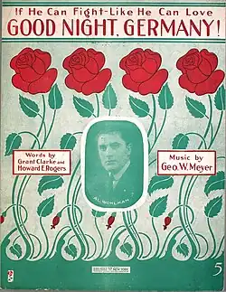 "If He Can Fight Like He Can Love, Good Night Germany!" is a World War I song from the perspective of a woman confident that her boyfriend will be a good soldier because he was a good lover. It became a hit after it was released by The Farber Sisters in 1918.[1]