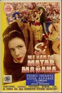 If I'm to Be Killed Tomorrow (Spanish: Si me han de matar mañana) is a 1947 Mexican comedy film directed by Miguel Zacarías and starring Sofía Álvarez, Pedro Infante and René Cardona.[1] [2] It was shot at the Churubusco Studios in Mexico City. The film's sets were designed by the art director Vicente Petit. A Ranchera film, it was produced during the Golden Age of Mexican Cinema. The title comes from a shortening of the expression "If I'm to be killed tomorrow, better to get it over with today".[3]