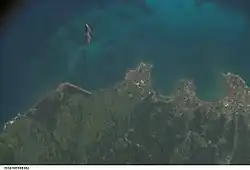 Satellite photo of the northern part of the island of São Tomé with Ilhéu das Cabras