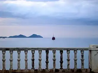 Ilhéu das Cabras is an uninhabited island in the Gulf of Guinea. It is one of the smaller islands of São Tomé and Príncipe. The islet is located about 2 km off the northeast coast of the island of São Tomé, 8 km north of the city centre of São Tomé. The islet consists of two hills, about 90 metres high.[1] There is a lighthouse on the northeastern summit,[1] built in 1890; its focal height 97 metres[2] and its range is 12 nmi (22 km; 14 mi).[3] The islet was mentioned as "Mooro Caebres" in the 1665 map by Johannes Vingboons.[4]