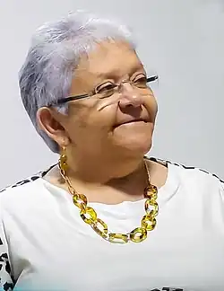 Imelda Daza Cotes was born in Valledupar, Cesar Department on 17 March 1948. She earned a degree in economics from the National University of Colombia.[2] Together with other professors and students, she promoted the creation of the Popular University of Cesar in 1973. Motivated by the speeches of Luis Carlos Galán, she became the first woman president of the Valledupar city council in 1983, commissioned by liberals and conservatives.[2][3] Along with a group which included Ricardo Palmera Pineda, she formed a popular civic movement called Common Cause, which would later join the UP.[3][4] On 25 May 1986, as a member of the UP, she was elected councilor of Valledupar, along with six councilors in other municipalities.[2]