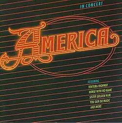 In Concert is the second official live album by American folk rock duo America, released by Capitol Records in July 1985.[2] This was the sixth and last release by America on the Capitol Records label and was the first America album ever issued on the budding compact disc format. This was America's first album that failed to chart. No singles were released from the album.