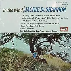 In the Wind is the fifth studio album by American singer-songwriter Jackie DeShannon, released by Imperial Records under catalog number LP-9296 as a monophonic recording in 1965, and later in stereo under catalog number LP-12296 the same year. It was arranged by Jack Nitzsche.