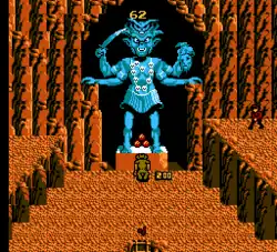 The player advances through 12 levels (called "waves"), the first nine of which require Jones to travel through the palace and recover the Sankara Stones. In these stages, the player may restart the game with all items intact in the last area reached. Afterwards, if the player dies, they must return to the Chamber of Kali (Wave 9) and finish the game from that point. Each level also has a timer that goes from 99 to zero. If time runs out, the player is confronted by Mola Ram and loses one life and all of their items. All levels also contain mine cart rooms, where Jones can ride the rails through the levels across hazards and past enemies.[6]