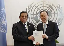 President Susilo Bambang Yudhoyono with UN Secretary-General Ban Ki-moon in New York City, 30 May 2013
