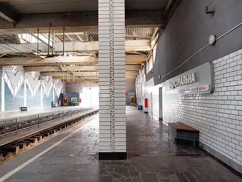 Insdustrialna (Ukrainian: Iндустрiальна; Russian: Индустриальная, romanizedIndustrialnaya) is a station on the Kryvyi Rih Metrotram. It was opened on 25 October 1999 as the starting station on the third stage of the system.