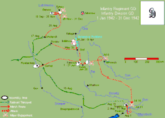 Map of Infantry Regiment Großdeutschland movements in 1942
