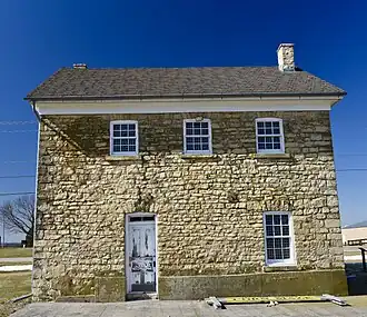 Built in 1872, this 2½-story structure is composed of stone blocks that vary somewhat in shape and size, and they were laid in courses. Because of its late date compared with the other historic stone buildings in the county, it features segmental arches instead of lintels. By the time it was built limestone construction in the county had already reached its peak.[2] Adam Strasser and Frank Schlecht were contractors from Bellevue, Iowa who were responsible for its construction, as was local stonemason John Weis. The other 19th-century buildings from the poor farm have been removed, and replaced by the county care facility across the highway. This building is now part of a demonstration farm. It was listed on the National Register of Historic Places in 1992.[1]