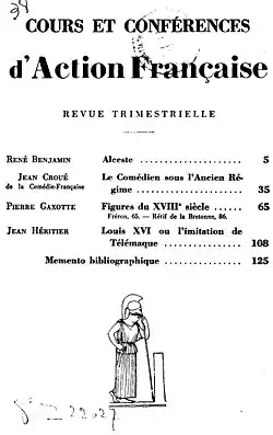 ![]() Bulletin of the Courses of the Institut d'Action française from January 1929. | |