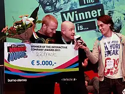The Interactive Awards are awarded to artists, bands and music organizations that use the internet in an inventive way to market (their) music. Since 2008 the Interactive Awards are presented on an annual basis during The European Music Conference and Showcase Festival Eurosonic Noorderslag in the Dutch city of Groningen.[1] The award aims to encourage European talent and highlight artists and bands that inspire others in an interactive field.[2] Two awards are presented at the Interactive Awards, namely the Company Award and the Artist Award.[2] The Artist Award aims to highlight artists or bands with special online initiatives. The prize includes a gift of 5000 euros.[2] The Company Award was introduced to support online (music) portals and was added to the Interactive Awards in 2010.[3] The Interactive Awards are an initiative of internet agency theFactor.e and Dutch Music rights Foundation Buma/Stemra.[2] The Interactive Awards are hosted by Eurosonic Noorderslag.