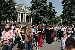 People visiting the Pushkin Fine Arts Museum on International Museum Day