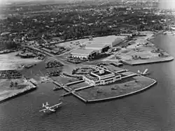 The Navy requisitioned the entire Dinner Key facility in 1943 and commissioned it as Dinner Key NAF.[1] After the technological advances of World War II and the construction of suitable airports in South America made seaplanes largely obsolete, Pan Am transferred its operations to Miami International Airport, which had been in operation since 1928 as Pan American Field. Pan Am's final flight to Dinner Key took place August 9, 1945. This happened to be the same day an atomic bomb was dropped on Nagasaki, essentially ending World War II.[2]