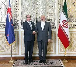 New Zealand and Iranian foreign affairs ministers McCully and Zarif meeting in Tehran
