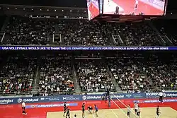The United States men's national volleyball team plays the Iran men's national volleyball team in the first of four friendly matches, held with support from the U.S. Department of State in Los Angeles, on 9 August 2014.