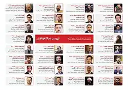 | 14 | Rouhollah Izadkhah | Justice Seekers / Stability Front | 784,456 | 42.59 | ||||