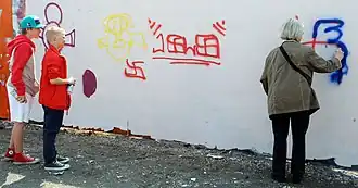 5. ^ a b c "German 'Graffiti Grandma' fined on Yom Kippur for painting over neo-Nazi slogans". Times of Israel. 14 October 2019.