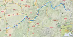 The Isère's course measures 286 kilometers (178 miles)[1] and runs through a wide variety of landscapes: from its source near the Italian border in the western Alps, it crosses the Pays de Savoie and the Tarentaise Valley, cuts between the Chartreuse and Belledonne mountain ranges, follows the Vercors Massif, passes through the Dauphiné province, and finally meets with the Rhône at the foot of the Vivarais.