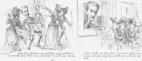 Cartoon by Antônio Bernardes Pereira Netto in Revista Illustrada, 29 March 1890, portraying minister Cesário Alvim's refusal to vote for women