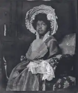 The subject in the painting had previously been described by the art dealer Jan C. Schuller as "little negress" during an exhibition in 1908.[10] A newspaper at the time described the portrait as "the superbly painted 'Little Negress' of very distinguished colouring and conception and with fine painting of the fabric of the clothes and of the fan."[11][1]