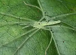 The male is recorded at 10.1mm in length whereas the female is 16.0mm. In life, the spider is coloured green.[1]
