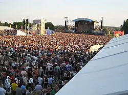 The festival was filmed and highlights were shown on late night broadcasts on Channel 4. Notable moments included Coldplay covering Lou Reed's 1972 song 'Perfect Day' during their Sunday night headline performance after the ex-Velvet Underground frontman failed to play it in his 'unpredictable' set earlier in the day. Coldplay singer Chris Martin told media that Lou Reed had asked them to do the cover to 'placate the crowd'.[1] The Sunday also saw Procol Harum return to the festival for the first time since they played at the original version of the festival in 1970.