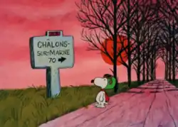Snoopy's journey across the French countryside has been praised for its art and animation. The backgrounds were painted rather than drawn, and it is the only scene to use linear perspective.