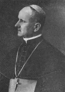 Ivan Šarić (27 September 1871 – 16 July 1960) was a Catholic priest who became the archbishop of the Roman Catholic Archdiocese of Vrhbosna in 1922. In 1940, Šarić was tasked by the national bishops' conference to put together the first modern Croatian translation of the Bible. A benefactor of the Bosnian Croat population, Šarić became a controversial figure because of his pro-Ustasha activities and rhetoric, including his support for forcible conversions to Catholicism inside the Independent State of Croatia during World War II.