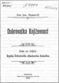 Ivan Stojanović (17 December 1829 – December 1900) was a Catholic priest from Dubrovnik. He wrote the book Dubrovačka Književnost, published in 1900, arguing that the people of Dubrovnik were Roman Catholic by religion, but by language Serbs. He was involved with the literary journal Slovinac.