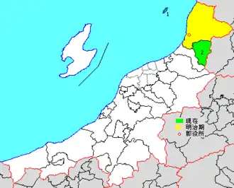 Map showing original extent of Iwafune District in Niigata Prefecture: