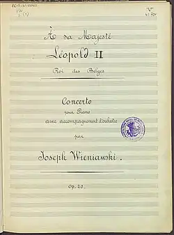 J. Wieniawski, title page of the Concerto for piano and orchestra (op. 20), dedicated to Leopold II, king of Belgium (Library of the Royal Conservatory of Brussels, B-Bc, FC-3-W-004/5)