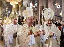 ![]() Bishop József-Csaba Pál, the Roman Catholic Bishop of Timișoara, dressed in liturgical vestments. | |