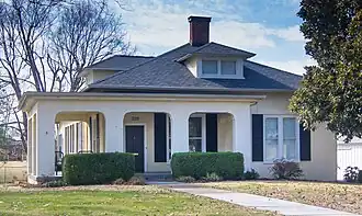 The J. A. Gilman Residence is a Mission Revival style home in the town of Greenville, Kentucky. The residence was constructed circa 1855 and originally served as the residence for Professor William Green, President of the Greenville Female Academy. Established in 1850, the Greenville Female Academy was the first higher educational institution for women in Muhlenberg County, and it consisted of numerous buildings, including classrooms, a dormitory, and a residence for Professor Green. In 1912, the residence was purchased by J. A. Gilman, a local civil engineer, and remodeled extensively in Mission Revival style. Today the J. A. Gilman residence is a well preserved and rare surviving example of Mission Revival architecture in the region.