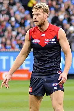 129. ^ Ralph, Jon (4 September 2014). "Melbourne skipper Nathan Jones wins third best and fairest award, Dom Tyson and Bernie Vince follow". Herald Sun. Retrieved 6 February 2017.