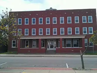 The Jackson Hotel is a historic hotel building located at 139 W. Peoria St. in Paola, Kansas. The hotel was built in 1921 on a site which had contained a hotel since 1863; the Jackson Hotel was the third hotel built at the site. Architect George P. Washburn designed the hotel in the Commercial style. The hotel features a full-length porch on the ground floor and a front entry with a transom and sidelights, a common element of group residences of the era intended to make the building resemble a home. From 1937 to 1969, Paola business directories listed the Jackson Hotel as one of only two in the city, along with the Commercial Hotel; it became the only hotel in 1969 when the Commercial Hotel was demolished. By 1992, the hotel building had been vacated; it remained empty until a 2006 redevelopment effort.[2]